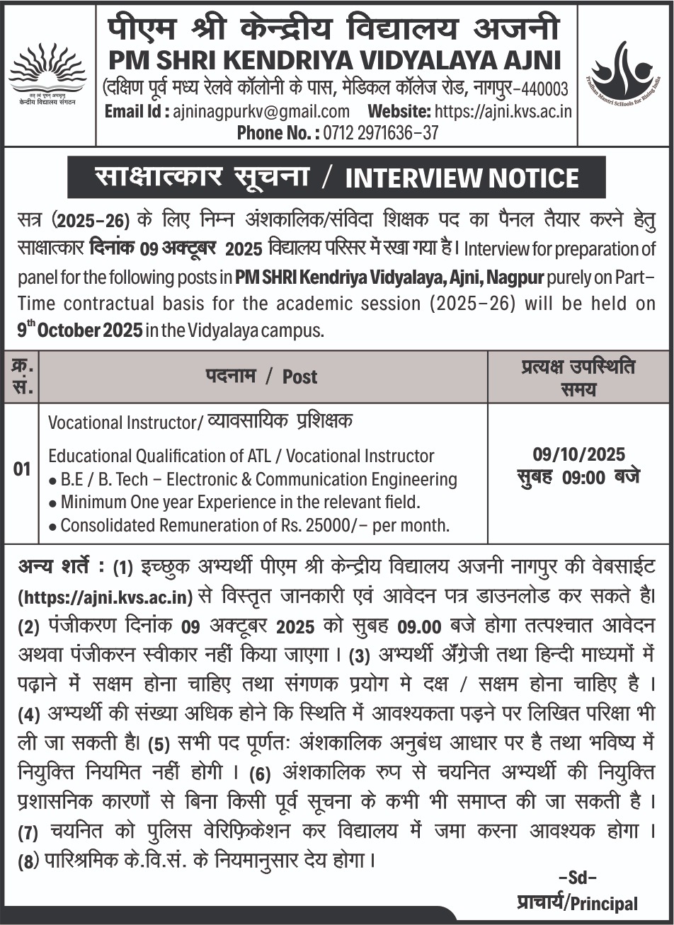 जानिए पीएम श्री केन्द्रीय विद्यालय अजनी प्रथम पाली के बारे में